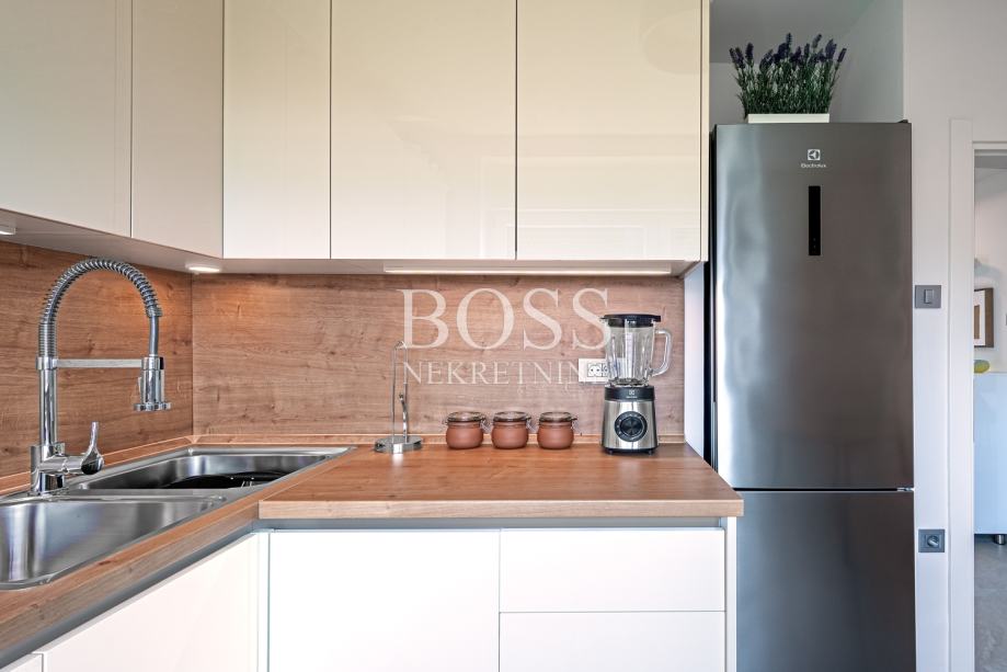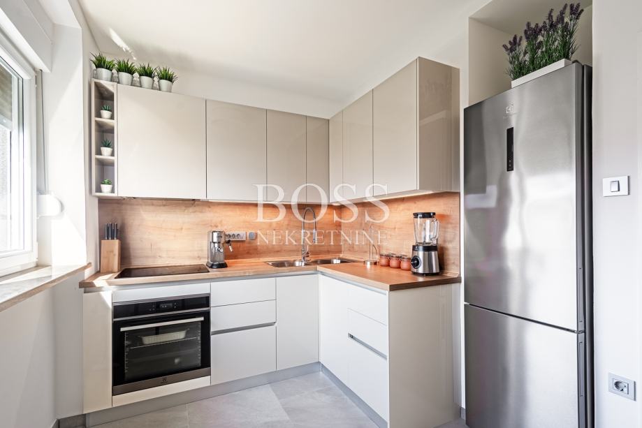Turnić, u ponudi je kompletno i vrhunski uređen i opremljen jednosoban stan s dnevnim boravkom površine 57m2. Sastoji se od kuhinje s blagovaonom, dnevnog boravka, jedne spavaće sobe, hodnika, kupaone, zasebnog toaleta, izbe, velike lođe zatvorene ALU stolarijom. U stanu je izvršena kompletna adaptacija pa imate osjećaj da ste u novogradnji, promijenjene su sve vodoinstalacije i elektroinstalacije, postavljena je nova vanjska i unutarnja stolarija, protuprovalna vrata, u sobama je postavljen parket najviše klase. Namještaj, tehnika, posuđe, kuhinjski pribor, ručnici i posteljina su novi i nikada korišteni. Tehnika je vrhunska i kompletno nova, a uključuje perilicu i sušilicu u jednom, perilicu posuđa, dva klima uređaja pa čak i vrhunski usisavač i još neke druge manje uređaje. U sklopu dnevnog boravka postavljen je vrlo kvalitetan i suvremen audio/video sustav namijenjen vjernoj reprodukciji glazbenih i video zapisa posredstvom internet i streaming platformi i lokalno pohranjenih datoteka. Vrhunski zvuk i slika za trenutke opuštanja, lagano za korištenje. Vrhunski opremljen stan za ljude željne kvalitetnog življenja. Dio režija u cijeni. Boss, kontakt: 098/537-907 Jasna