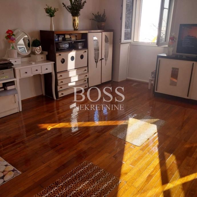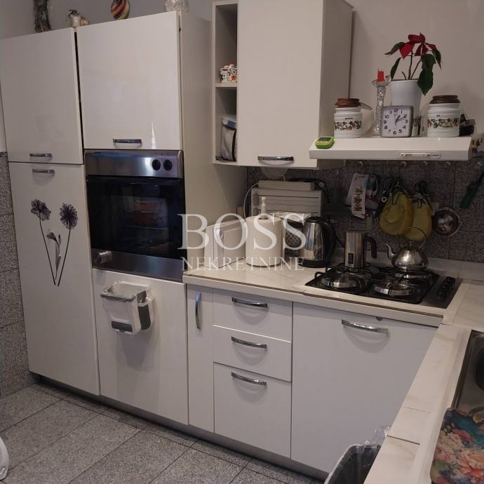 Prilika! Prodaje se uredan i održavan dvosobni stan smješten na prvom katu stambene zgrade. Stan se sastoji od prostranog dnevnog boravka površine 26m², sobe, kuhinje, hodnika i kupaone. Stan se prodaje potpuno namješten. Pripada mu terasa, te dvije drvarnice, što osigurava dodatni prostor za pohranu. Postoji mogućnost grijanja na drva, a zgrada ima novi krov. Izvrsna lokacija u neposrednoj blizini svih važnih sadržaja. Stan je idealan kako za studente, tako i za starije osobe zbog funkcionalnog rasporeda i pristupačnosti. Boss, kontakt: 091/373-1010 Bosiljka