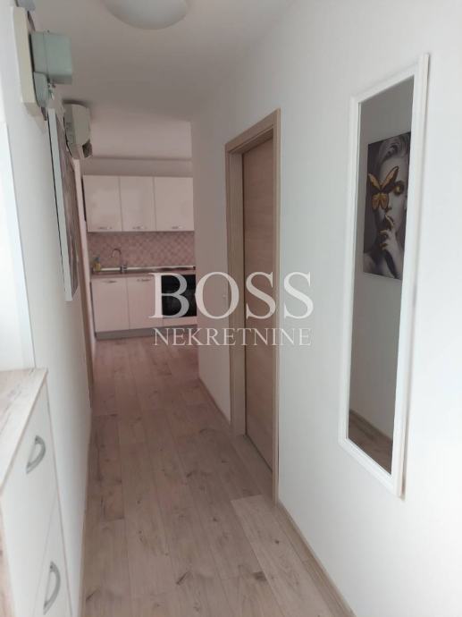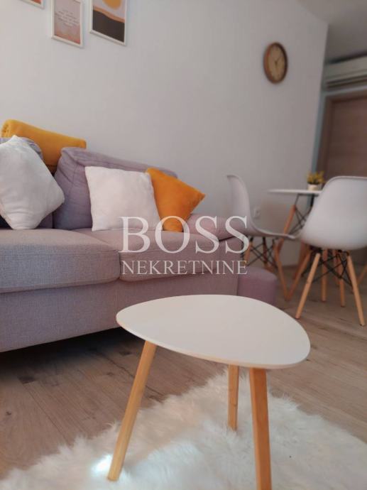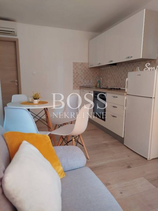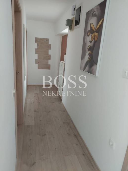 Turnić, dvosoban stan s dnevnim boravkom površine 52m2, kompletno uređen i namješten. Svijetao i sunčan stan s pogledom na more. Zgrada je okružena zelenilom i ima dovoljno parkirnih mjesta. Odlična lokacija, blizina svih sadržaja. Najam je 500 eura+režije. Boss, kontakt: 091/534-2214 Mirko