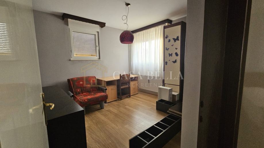 Stan se sastoji od ulaznog hodnika, dnevnog boravka, kuhinje i blagovaone sa špajzom, dvije spavaće sobe, kupaonice, odvojenog WC-a te balkona. Funkcionalan raspored i izuzetna iskorištenost prostora čine ovaj stan savršenim za obiteljski život.