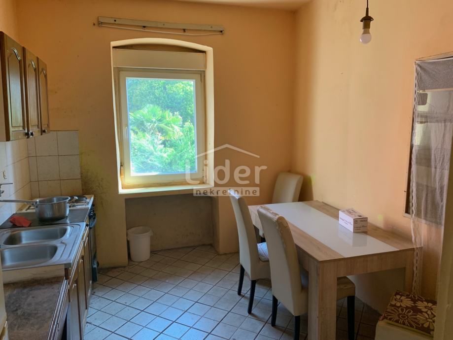 Prodaje se stan sa tri sobe (jug pogled na more), kuhinjom, kupaonom, hodnikom, ulaznom terasom i dijelom okućnice na korištenje (vrt). Mogućnost parkiranja na 70 metara od zgrade. Potrebna kompletna adaptacija zidova, podova, instalacija (zapušteno stanje).