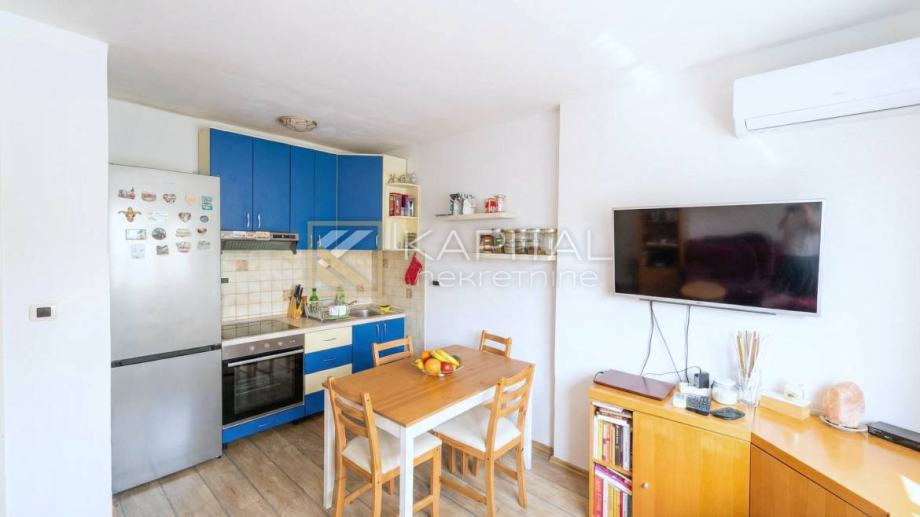 Prodajemo jednosoban klasičan stan na 5. katu peterokatnice. Sačinjavaju ga hodnik, kupaonica, open space kuhinja i dnevni boravak te spavaća soba s izlazom na veliki balkon s pogledom na more i borove. Pripada mu drvarnica. Prodaje se potpuno namješten i opremljen. Za sve dodatne informacije nazovite 091/540-8520 ili 099/2196 353.