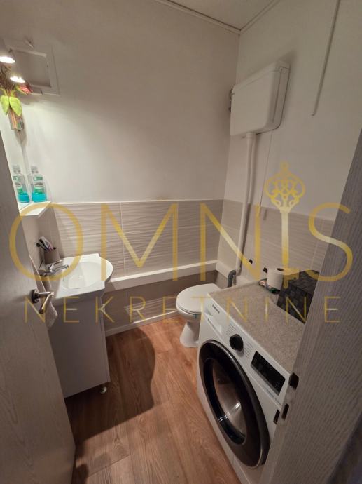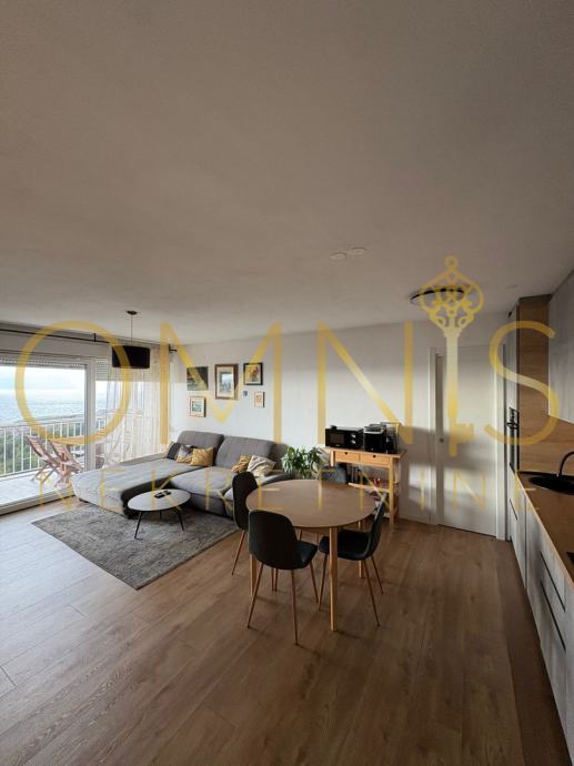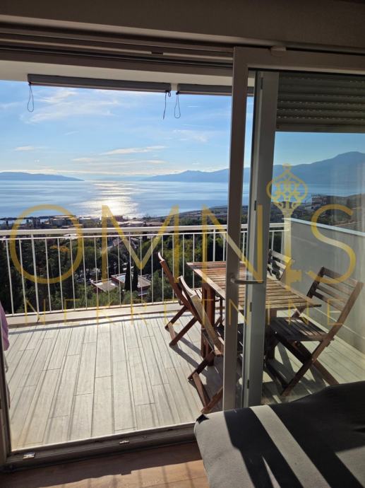 Stan je svijetao i prostran, a velika staklena stijena u dnevnom boravku omogućuje mnogo prirodnog svjetla te otvoren pogled na Kvarner. Lokacija je iznimno praktična – u blizini su škola, vrtić, trgovine, autobusna stanica, kao i brza povezanost s centrom grada i zaobilaznicom.