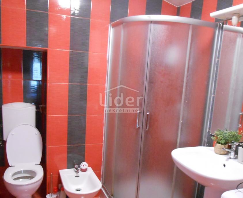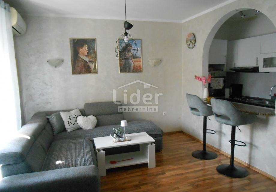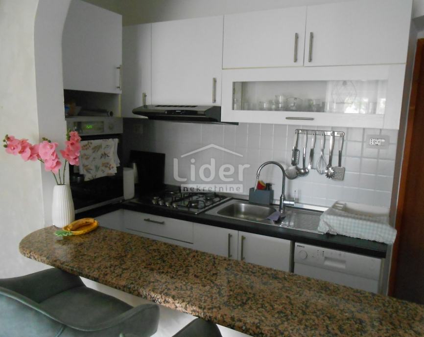 Sastoji se od otvorenog prostora s dnevnim boravkom i kuhinjom, blagovaone, dvije komforne spavaće sobe, kupaone i zasebnog wc-a.
