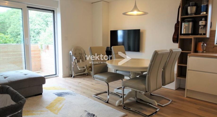 Svi uređaji i dio namještaja u stanu su još uvijek pod garancijom(perilica robe, sušilica, klima, radijatori, televizija,pećnica...).