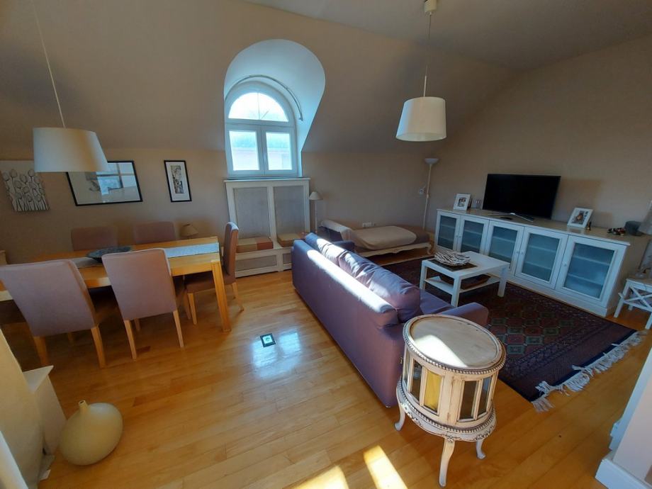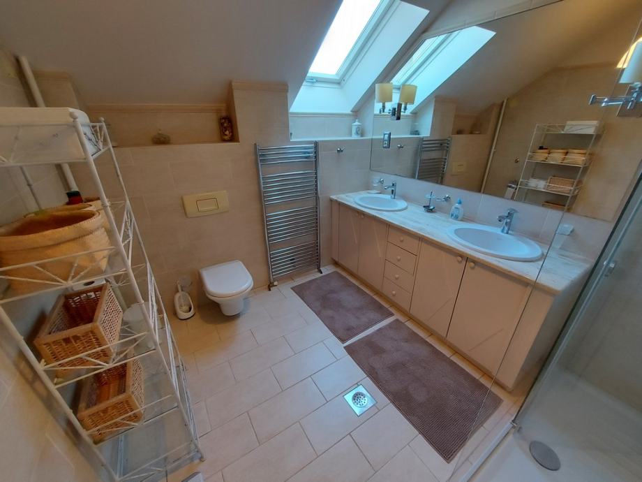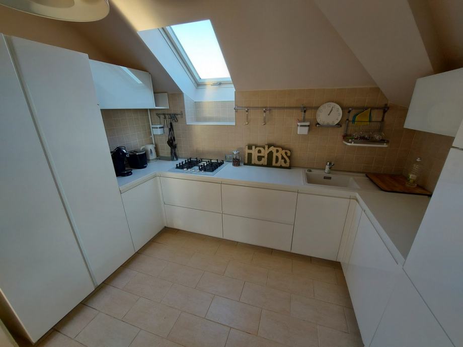 Stan je smješten na 2. katu obiteljske kuće s 3 stana. Orijentiran na 4 strane svijeta pruža puno dnevnog svjetla.