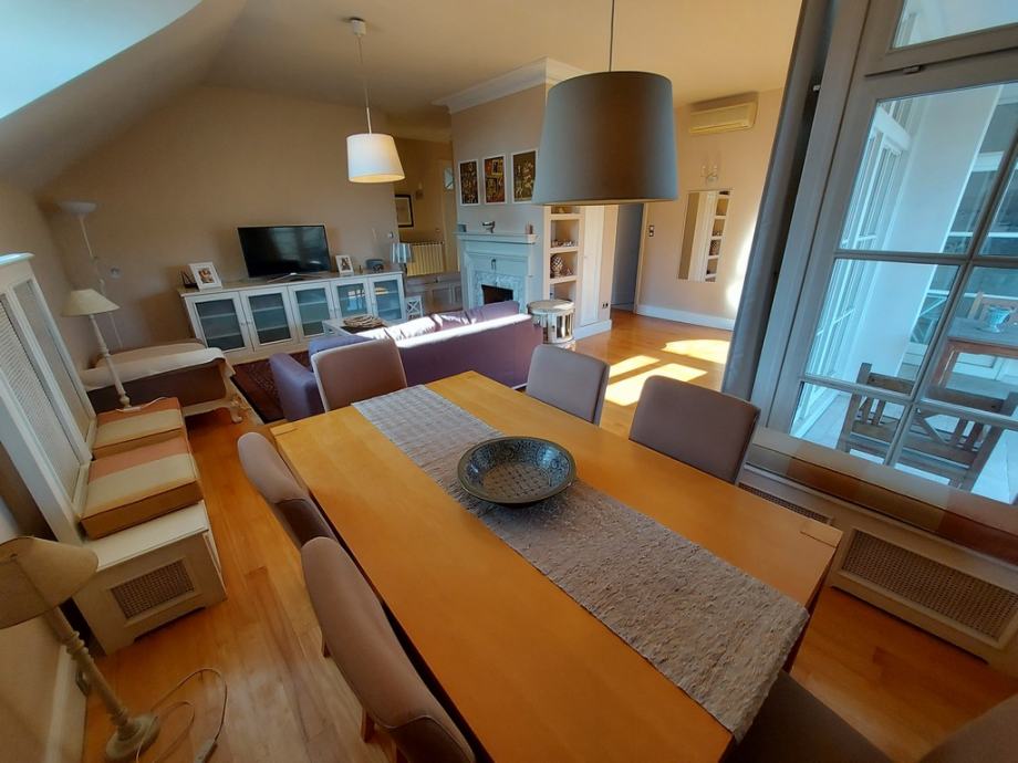 Sastoji se od dnevnog boravka s blagavaonom i kaminom, prostranom terasom s lijepim pogledom na jug, odvojene kuhinje sa smočnicom, kupaone, predprostora iz kojeg se ulazi u 2 spavaće sobe s walk-in closet i hodnika s ugrađenim ormarom.