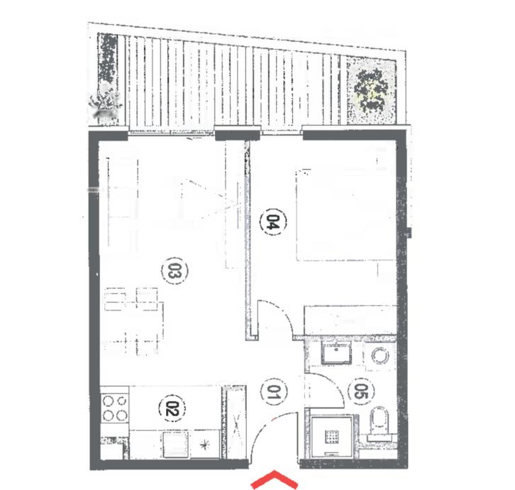 Sastoji se od dnevnog boravka s kuhinjom, spavaće sobe, kupaonice i lođe.