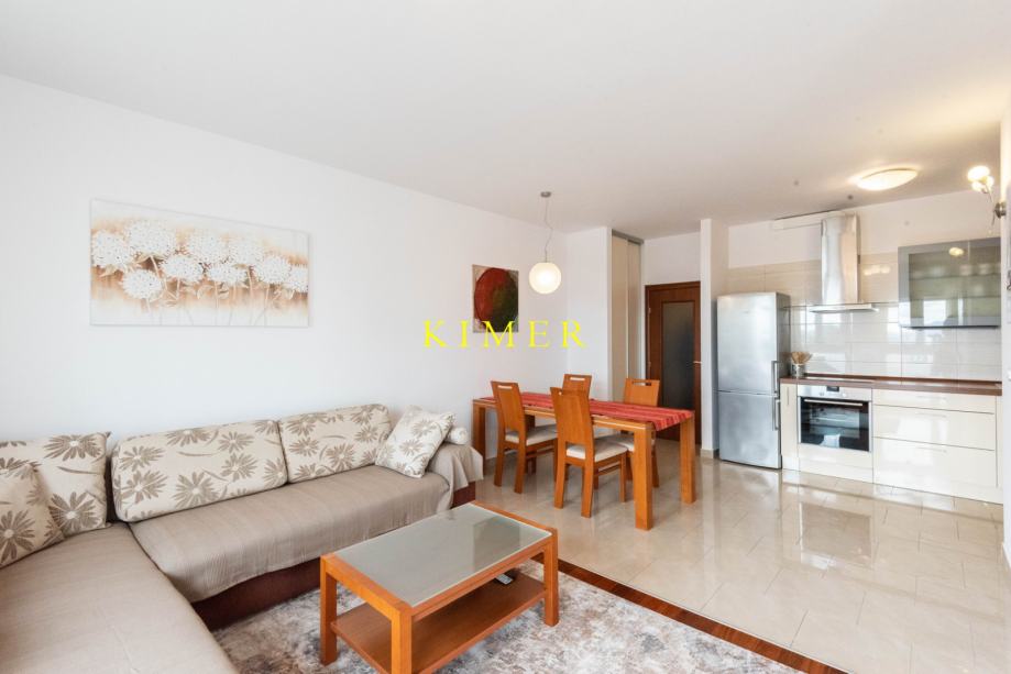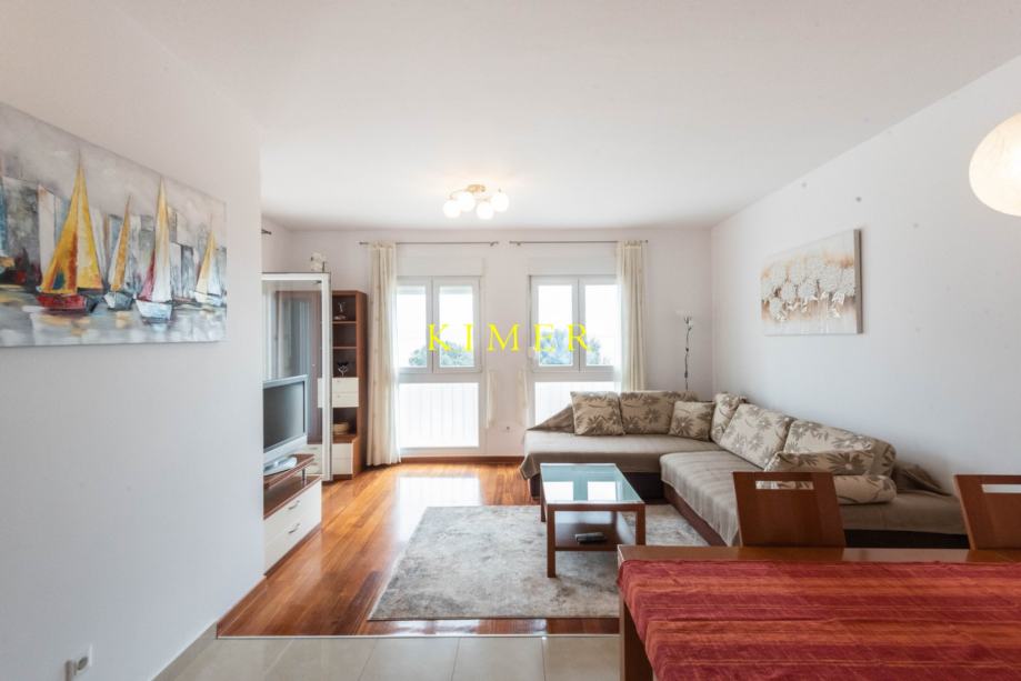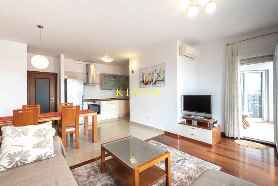 Sastoji se od prostranog dnevnog boravka, kuhinje s blagovaonom, dvije spavaće sobe, od kojih je jedna veća prostrana spavaća i druga manja, obje s izlazom na prostranu lođu, hodnika i kuponice.