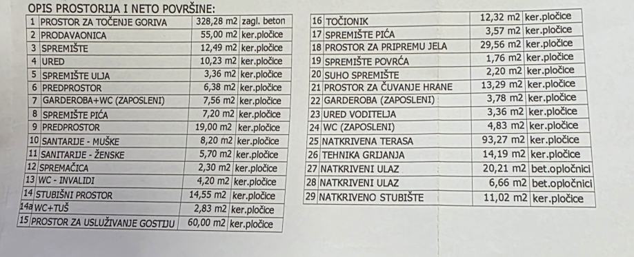- mogućnost zakupa restorana i benzinske postaje, zajedno ili odvojeno.