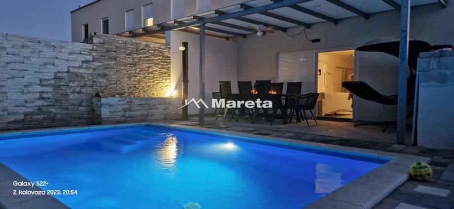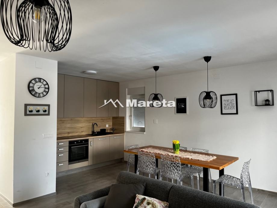 Stan ima svoj ulaz, izlaz na uređenu privatnu terasu sa vrtom u kojem je smješten bazen.