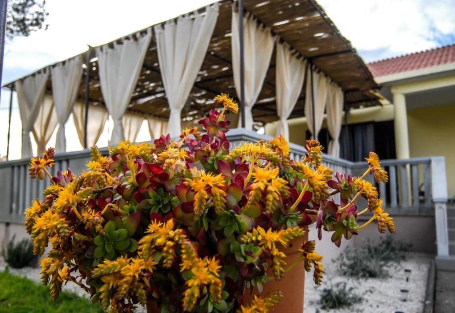 Kuća je okružena lijepim uređenim okolišem. maslinikom a na okućnici se nalaze i uređena terasa, vanjski tuš, ležaljke.