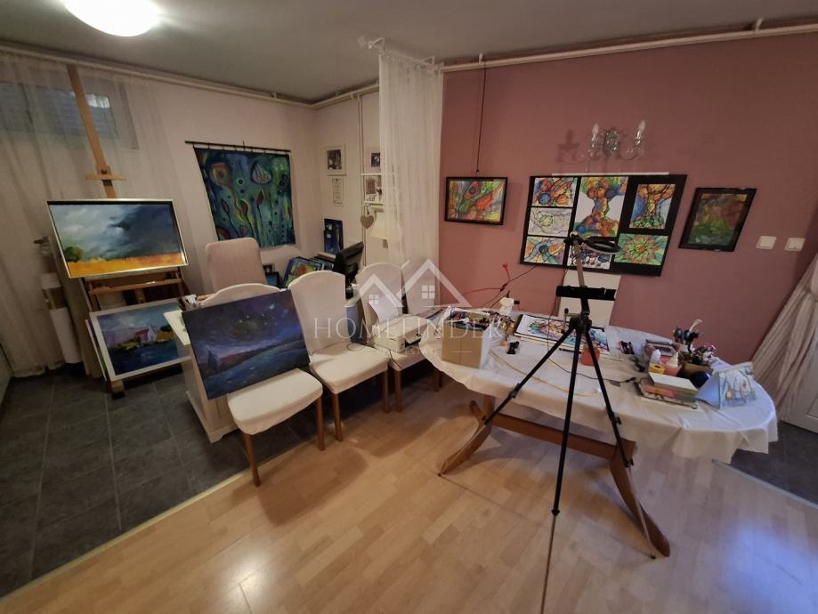 Suteren nudi raznovrsne mogućnosti: prostrana soba s direktnim izlazom u dvorište trenutno služi kao ured i atelje, a zahvaljujući postojećim instalacijama lako se može preurediti u garsonjeru. U ovoj etaži nalazi se i kupaonica, spremište te garaža. Osim toga, poseban ulaz vodi u radionu u kojoj je smješten hidrofor, budući da kuća ima i vlastiti bunar.