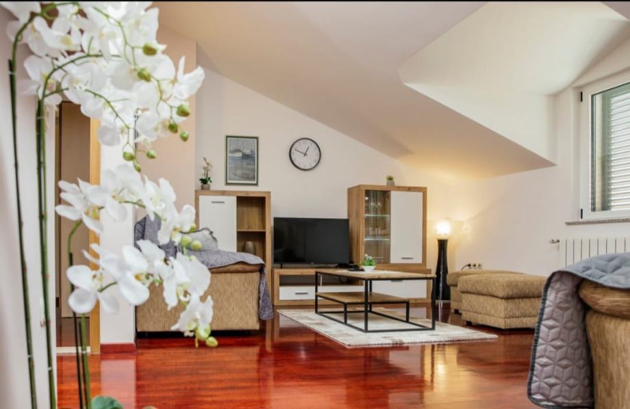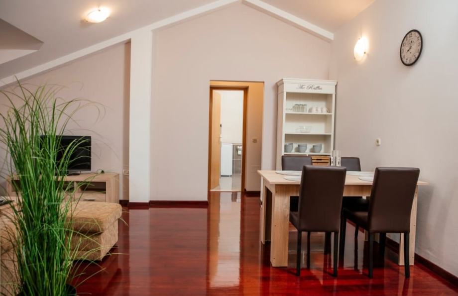 Prvi kat sadrži 4 spavaće sobe, dok na potkrovlju imamo dva apartmana.