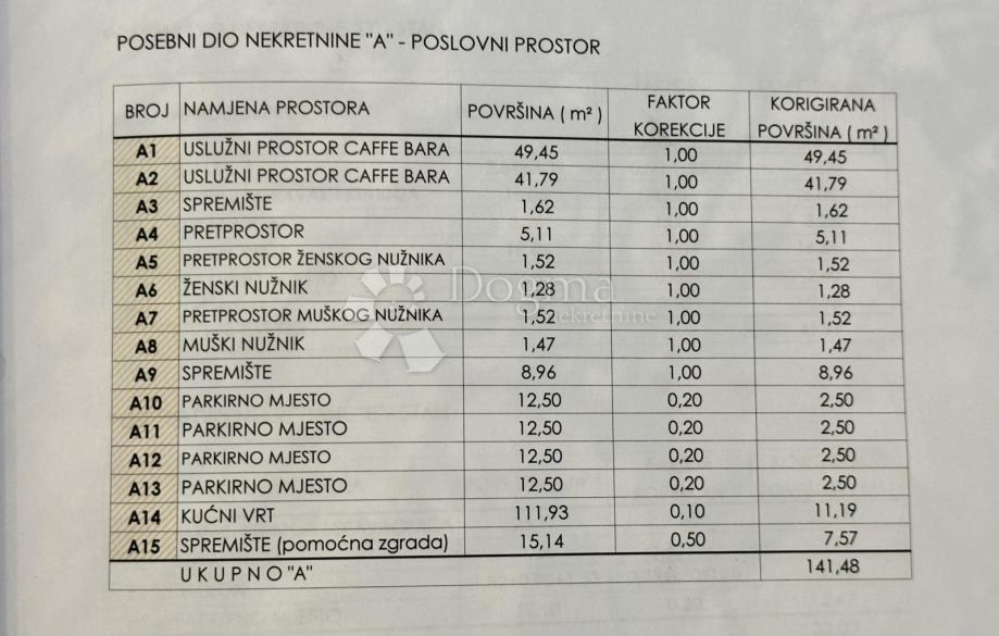 Veličina prostora je 108 m2 a osim prostora za goste ima i mogućnost pretvorbe sadašnjeg skladišta u kuhinju (nekada bila i pizzeria).