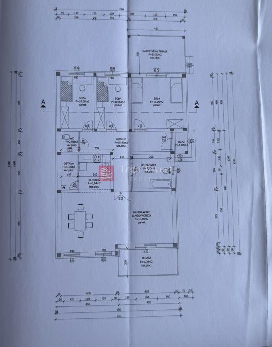 KUĆA se sastoji od ulaznog hodnika, tri spavaće sobe, kupaonice, gostinjskog WC-a, ostave te open space kuhinje, blagovaonice i dnevnog boravka s izlazom na natkrivenu terasu. Još jedna terasa dostupna je iz spavaće sobe.