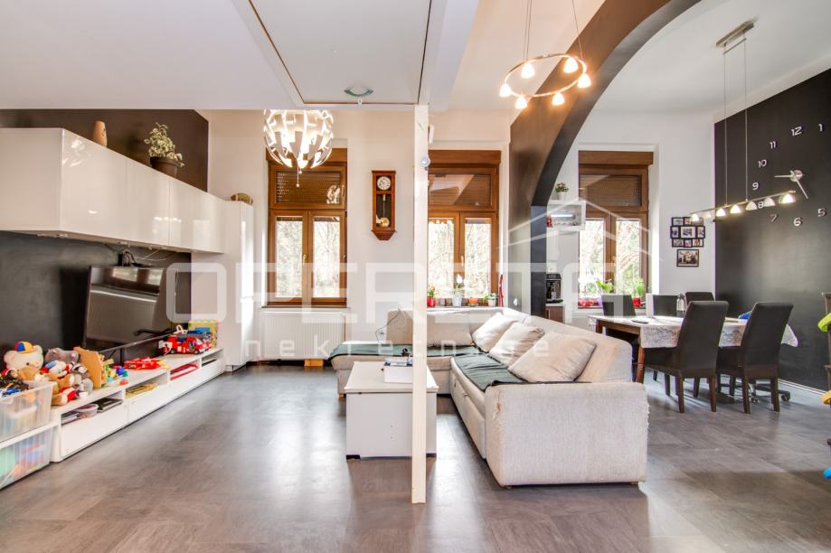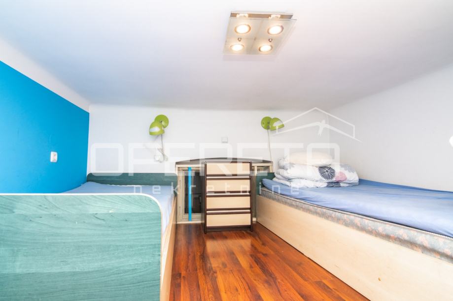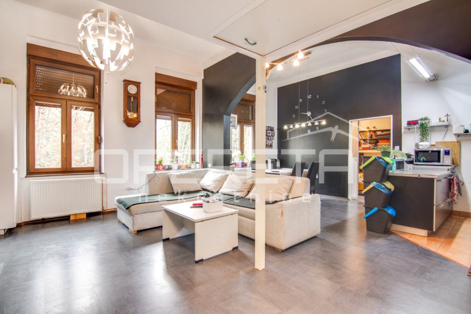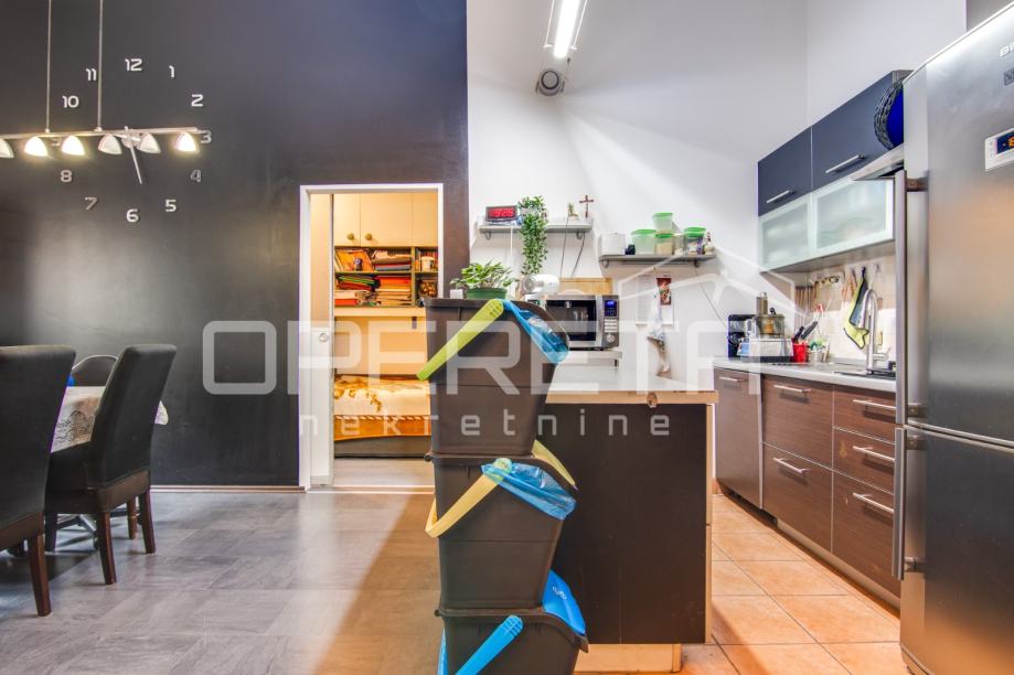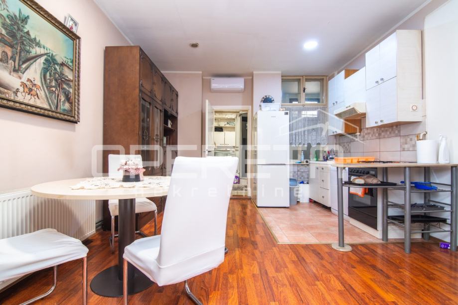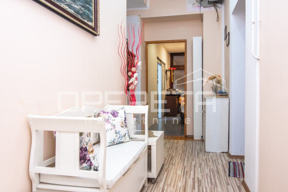 Sastoji se od 2 odvojene stambene jedinice ( 2-soban i 3-soban stan) na katu te 4 poslovna prostora i pripadajuće terase u prizemlju (ulični lokali). Moguć nastavak suradnje s postojećim najmoprimcima čime je osiguran solidan mjesečni prihod.