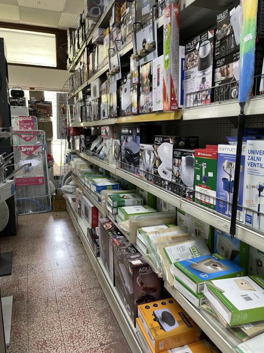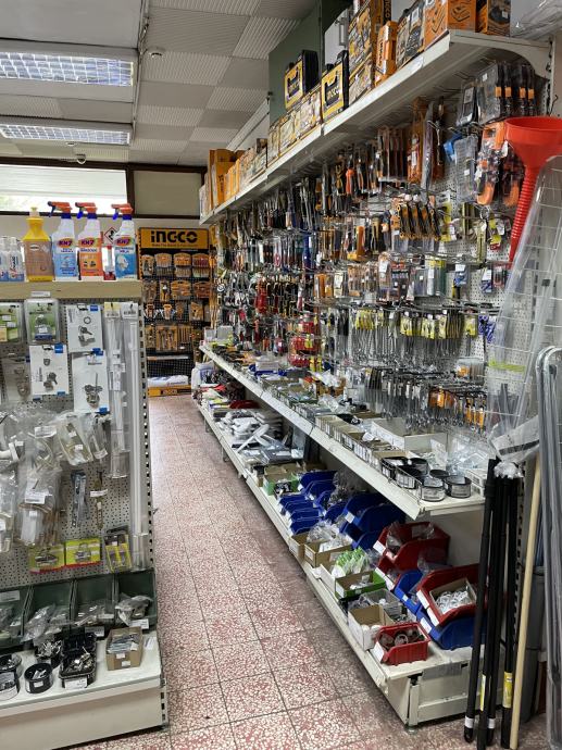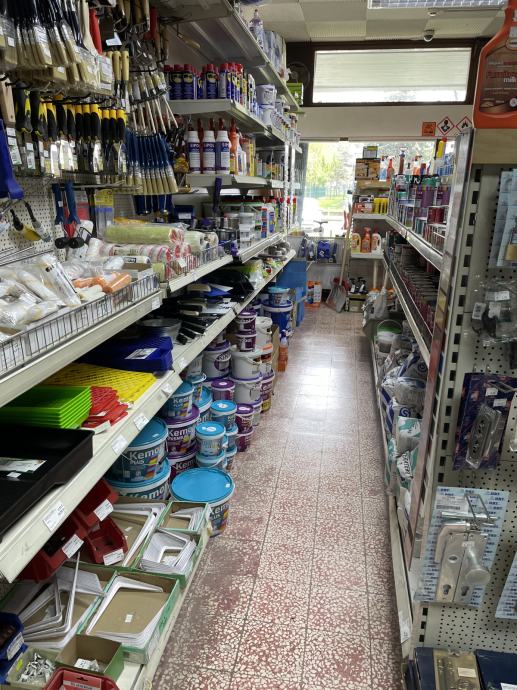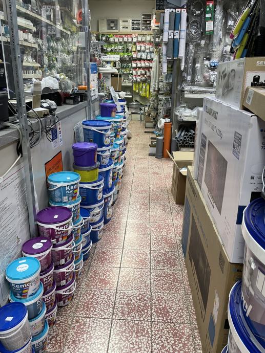 Trgovina je u radu , elektromaterijal , željezarija , sanitarije , boje i lakovi , kućanski aparati , 97 m2 .