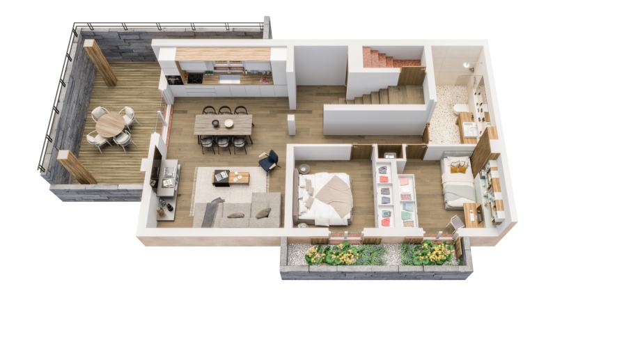 Ovaj prostrani stan sjeverne orijentacije nudi sve što je potrebno za ugodan odmor. Sastoji se od dvije spavaće sobe, kuhinje opremljene suvremenim aparatima, uključujući perilicu posuđa, te prostranog dnevnog boravka. Podno grijanje na struju osigurava toplinu u zimskim mjesecima. Također u blizini nalazi se rimska ostavština. Ima jedno parkirno mjesto u vlasništvu.
