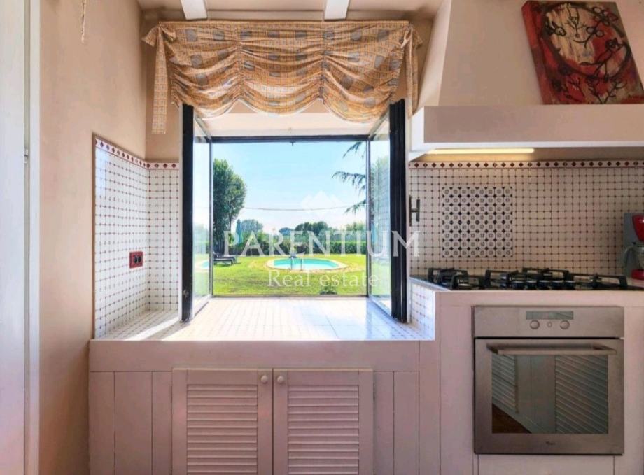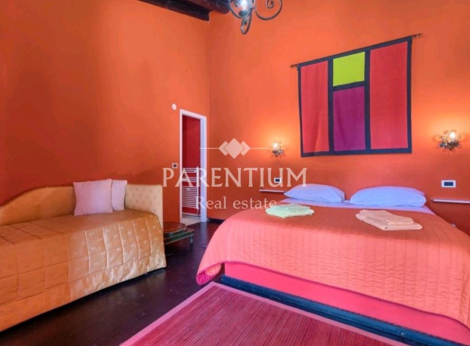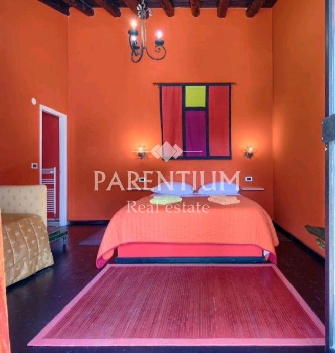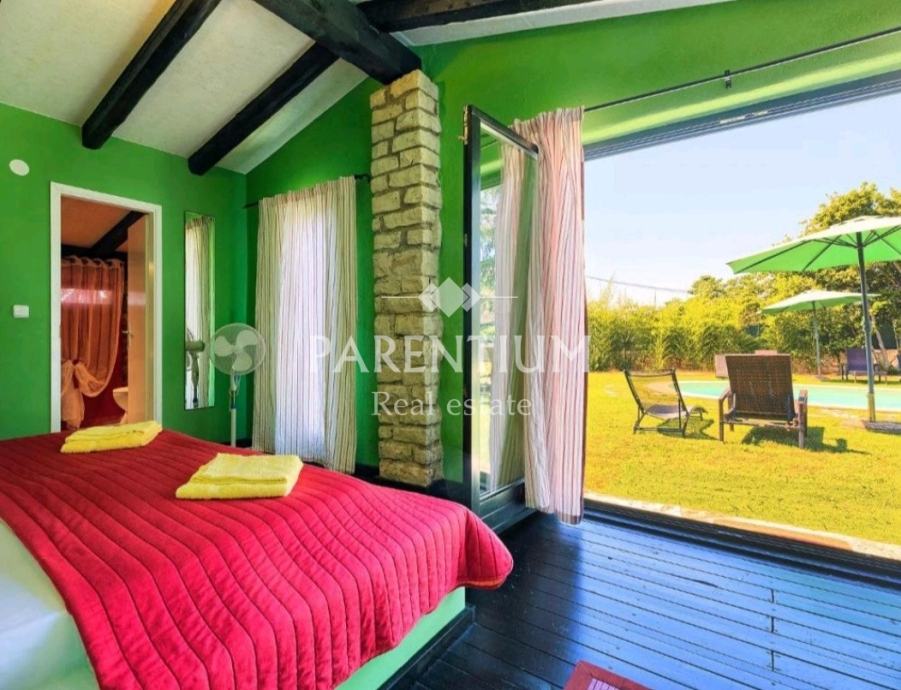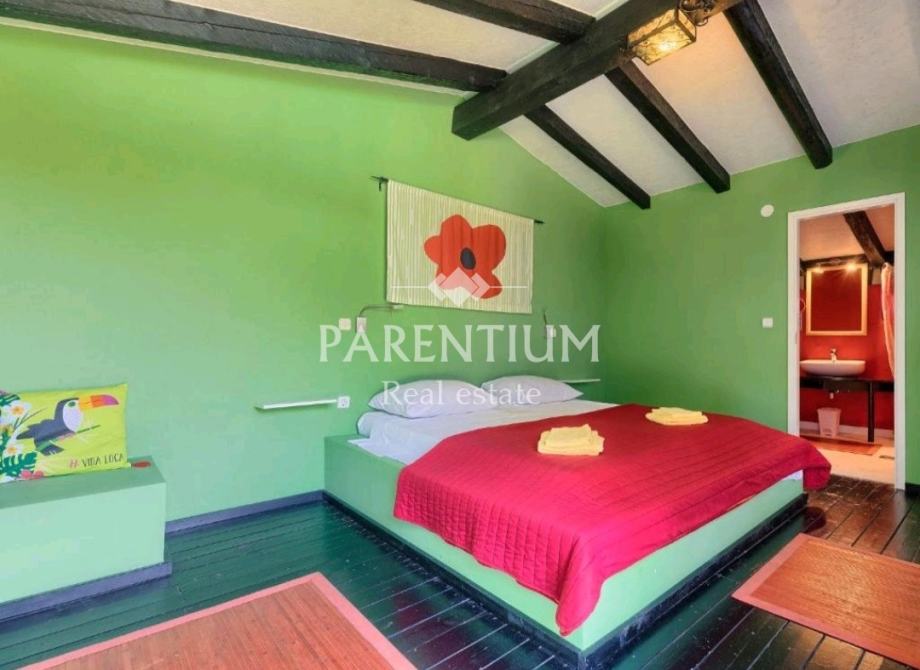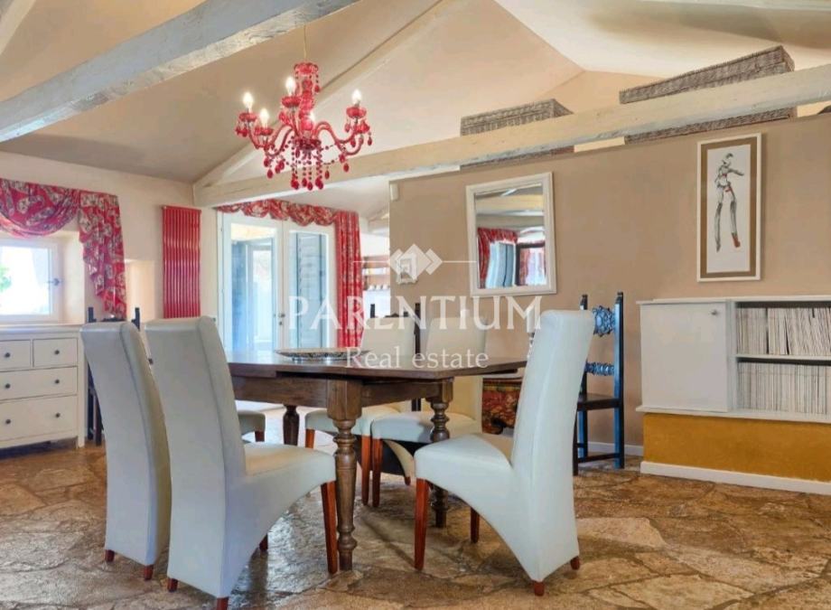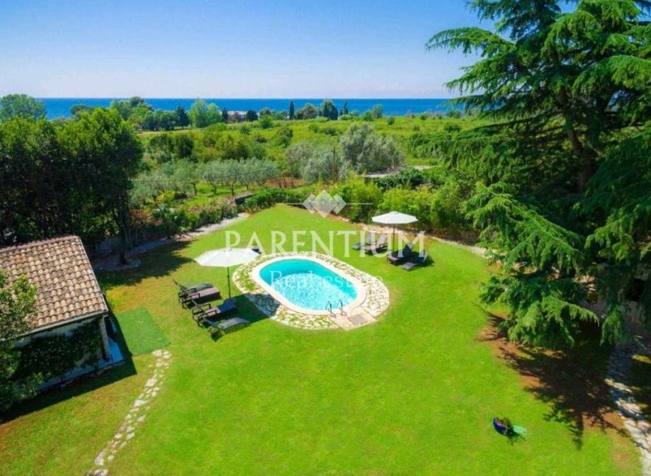 Umag, ekskluzivna vila samo 300 m od plaže, sastoji se od glavne kuće površine cca 170 m2 i tri pomoćna objekta, 25m2,28m2 i 44 m2. Glavne kuća sastoji se od kuhinje s blagovaonicom, dnevnog boravka, jedne spavaće sobe, kupaonice, WC-a i velike terase. Svaki pomoćni objekt ima po jednu spavaću sobu i pripadajuću kupaonicu. Kuća ima centralnog grijanja na lož ulje, a dodatno u glavnoj kući nalazi se kamin na drva. U sredini dvorišta nalazi se okrugli bazen veličine cca 25 m2. Okućnica je ograđena kamenim zidom i zelenom ogradom, te ima i sustav automatskog navodnjavanja. Kuća se uspješno turistički iznajmljuje kako zbog ekskluzivnog uređenja tako i zbog lokacije.Razgled nekretnine moguć je uz potpisan ugovor o posredovanju koji je temelj za daljnje postupanje u vezi s kupoprodajom i naplatom provizije sukladno Zakonu o posredovanju u prometu nekretnina. U slučaju kupoprodaje agencijska provizija iznosi 3% + PDV i naplaćuje se prilikom sklapanja predugovora/ugovora o kupoprodaji.