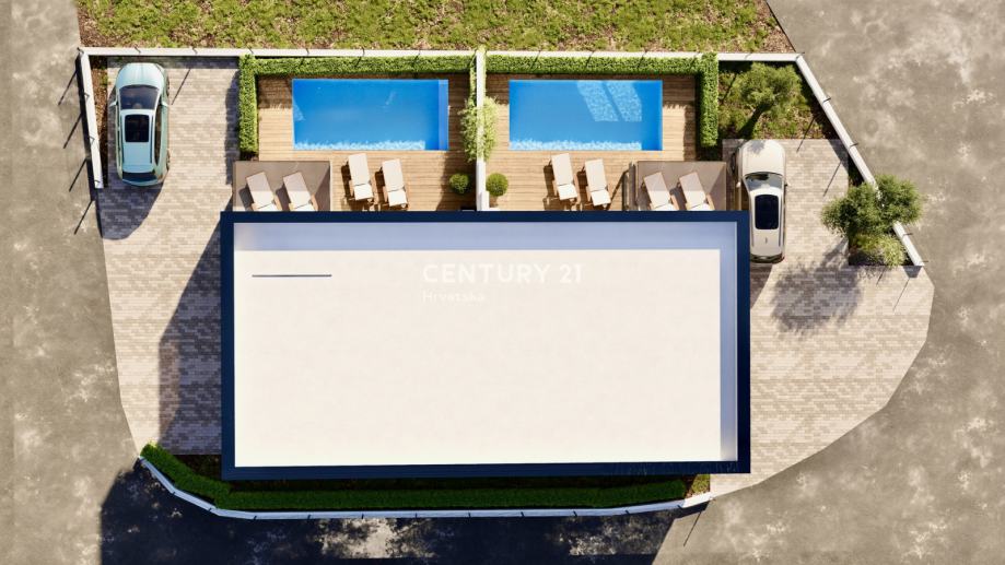 Dvorište će biti formirano i uređeno, sa bazenom dimenzija 6.80 x 2.80 m.