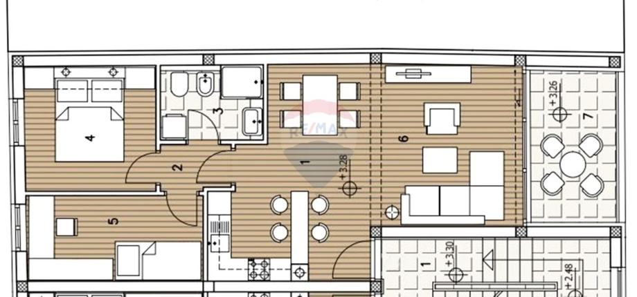 Stan je odličnog rasporeda s dnevnim prostorom otvorenog koncepta. Sastoji se od hodnika, kupaonice, 2 spavaće sobe, kuhinje, blagovaonice, dnevnog boravka i lođe.