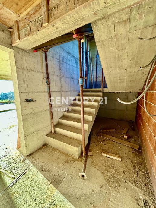 Također unutarnjim stepeništem penjemo se na drugi kat koji se sastoji od master spavaće sobe površine 33 m2, kupaonice i loggie površine 15 m2.