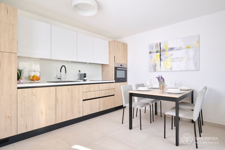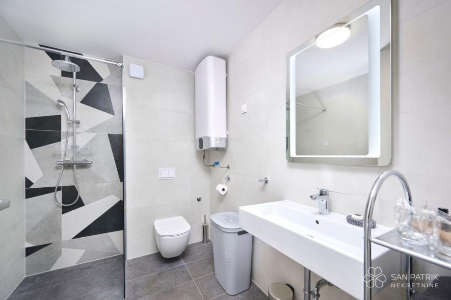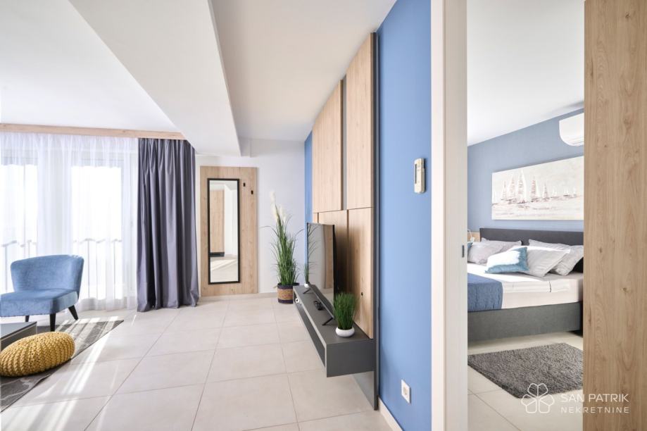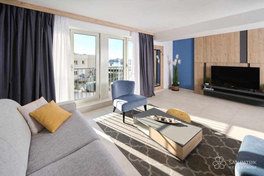 Ovaj apartman predstavlja savršenu investiciju i mjesto za odmor zahvaljujući vrhunskoj gradnji, modernom uređenju, blizini prekrasnih plaža i čistog mora. Smješten je samo 10 km od ulaza na autocestu A9, sat vremena vožnje do aerodroma u Puli i u blizini nacionalnog parka Brijuni.