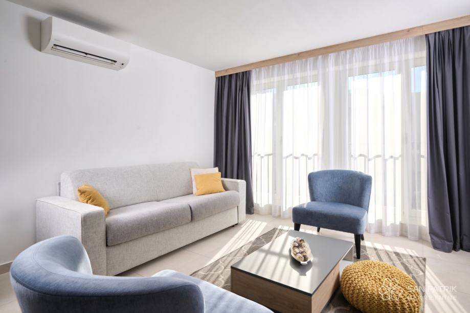 Zgrada, koja ima energetski certifikat A, izgrađena je 2017. godine i nalazi se na ulazu u naselje. Stan je trenutno u sustavu dnevnog najma, s vrhunskim ocjenama gostiju, i donosi vlasniku godišnju neto dobit od 20.000 EUR.