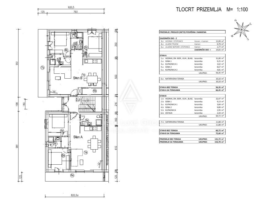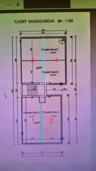 • Krovna terasa: cca 20 m² (svaki stan ima svoj dio iznad površine stana)