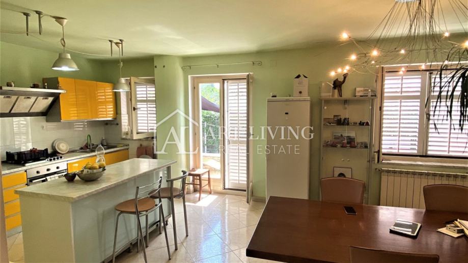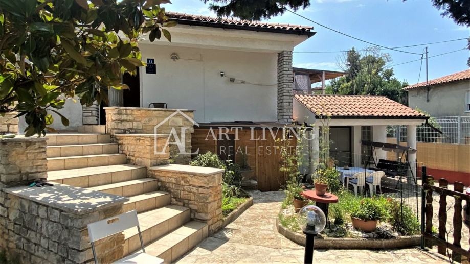Kuća ima ukupno 193 m2, ukupno zemljište čini 488 m2 , udaljena je 150m od mora te prekrasno uređene prirodne plaže. Niti 250 m od kuće nalazi se ATP teniski centar Stella Maris te 900m od samog centra grada Umaga. Kuća je prostrana, visoka prizemnica s 2 stambene jedinice s odvojenim ulazima. Lijepa, velika i ograđena okućnica. Veća stambena jedinica sastoji se od jedne spavaće sobe, kupatila, velikog dnevnog boravka, blagovaonice i kuhinje otvorenog tipa (open space). Iz kuhinje se može izaći na 2 velike terase od kojih je jedna natkrivena loggia. Druga stambena jedinica sastoji se od 2 spavaće sobe, kupatila, kuhinje i pripadajuće terase. Ista može služiti kao apartman za iznajmljivanje. Kuća se prodaje kompletno opremljena zajedno te ima vlastita 3 parkirna mjesta.