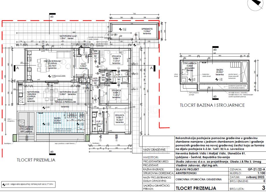 Na 50 m od mora nalazi se ovo građevinsko zemljište od oko 500m2. Voda i struja se nalaze u blizini a za zemljište postoji idejni projekt za kuću prizemnicu od oko 100m2 s 3 spavaće sobe i bazenom od 25m2. Zemljište je idealno za izgradnju vlastite vikendice ili investicije za turistički najam.