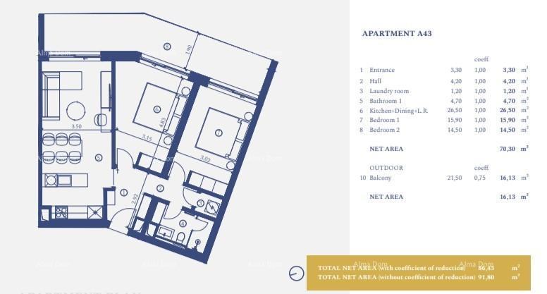 Apartman A-43 (91,80 m2) nalazi se na 3.katu: