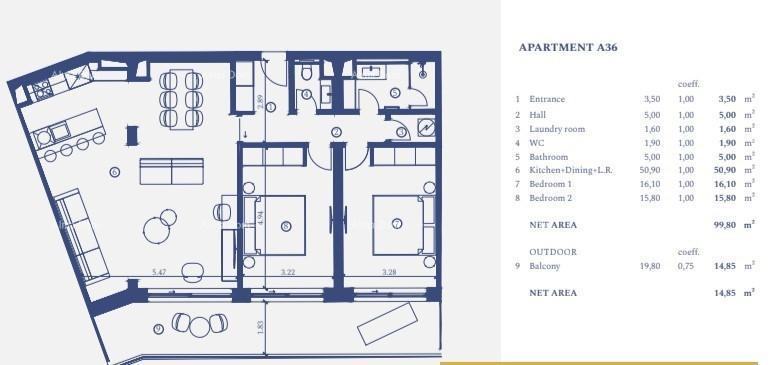 Apartman A-36 (122 m2) nalazi se na 2.katu: