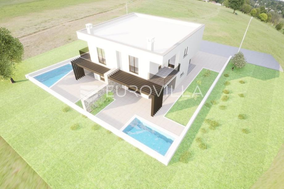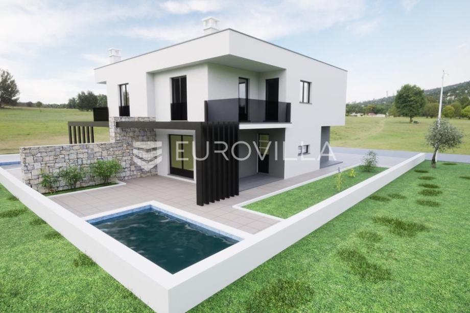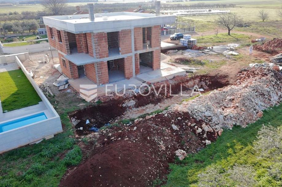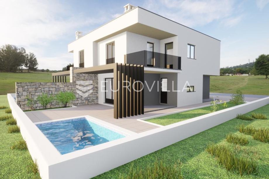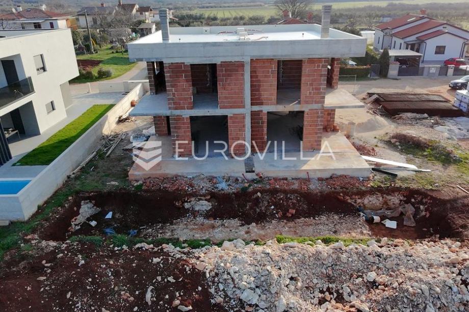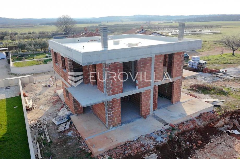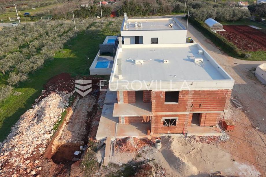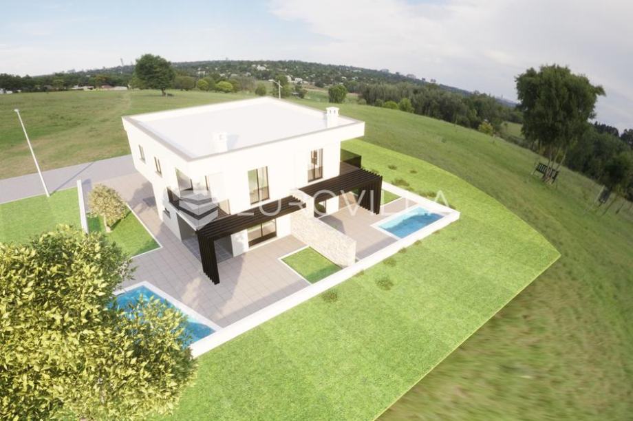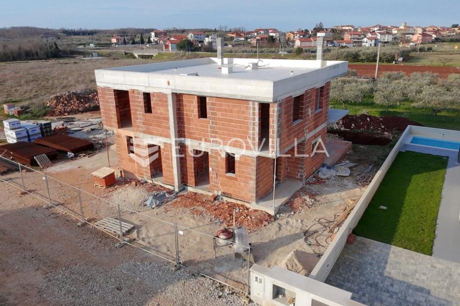Umag, moderna novogradnja s bazenom, nedaleko od Umaga.Prodaje se moderna duplex kuća u izgradnji, smještena u mirnom naselju svega nekoliko minuta od centra grada Umaga i prekrasnih plaža. Kuća se nalazi na parceli od 254 m2, a prostire se na dvije etaže, s ukupno 121,24 m2 stambene površine.U prizemlju se nalazi hodnik, open space kuhinja s blagovaonicom, dnevni boravak, te moderno uređena kupaonica. Na katu su smještene tri spavaće sobe, od kojih dvije imaju izlaz na natkrivenu terasu s prekrasnim pogledom na maslinike i naselje, te moderno uređena kupaonica. Okućnica kuće bit će uređena prilaznom stazom i travnjakom, a kuća će imati i vlastiti bazen veličine 15 m2, sa sunčalištem. Osigurana su dva parkirna mjesta, a na raspolaganju je i dodatna strojarnica koja može služiti kao spremište. Grijanje kuće predviđeno je putem klima uređaja, a dodatno je provedena prva faza za vodeno podno grijanje pa kupcu ostaje mogućnost ugraditi dizalicu topline po vlastitom izboru. Na krovu je pripremljena instalacija za solarnu energiju, što budućem vlasniku omogućuje dodatne uštede i energetsku neovisnost. Kuća će biti spojena na novi kanalizacijski sustav.Ova nekretnina predstavlja savršen spoj modernog života i prirodnog okruženja, u neposrednoj blizini grada, mora ,trgovina, i svih potrebnih sadržaja, ali dovoljno udaljena da osigura potpuni mir i privatnost.Za sve dodatne informacije i dogovor oko razgledavanja, slobodno se javite....