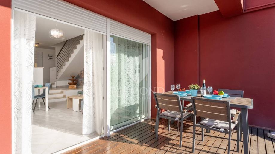 Na samo 5 minuta lagane vožnje od predivnih plaža, smještena na mirnoj lokaciji nalazi se ova prelijepa moderna kuća u nizu sa bazenom!