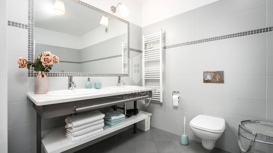 Kuća je opremljena s prvoklasnim materijalom: sagrađen od poroterm blok opeke, s demit fasadom, ugrađene prvorazredne pločice i talijanske sanitarije i visoko kvalitetnom PVC šestokomornom vanjskom stolarijom s ugrađenim aluminijskim roletama. Grijanje i hlađenje je na inverter klima uređaje marke Daikini.