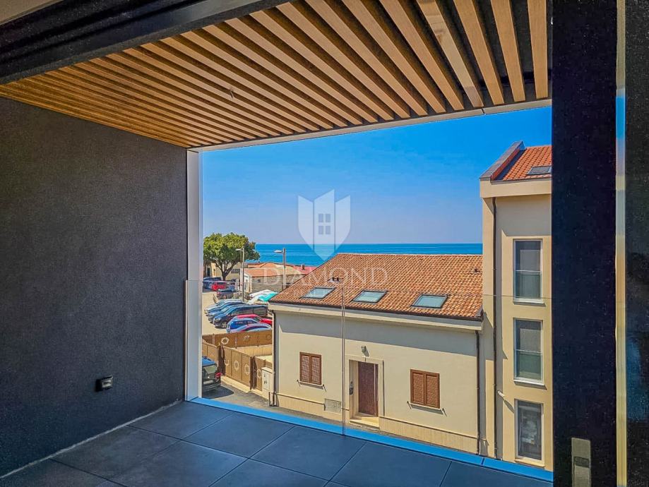Umag, novogradnja! Stan u centru 2. red do mora sa pogledom na more! (prodaja)