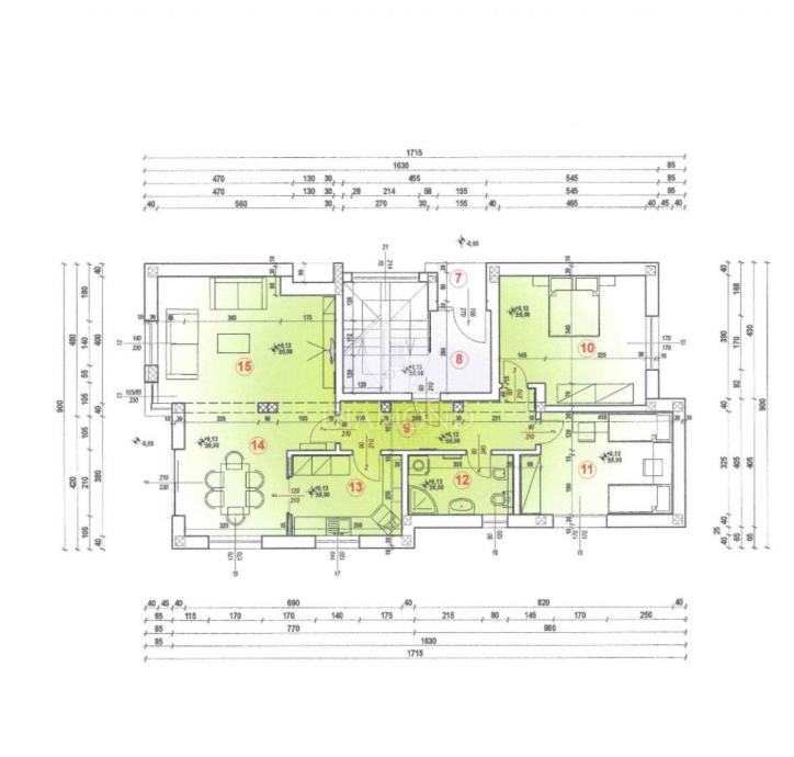 Stan se nalazi u manjoj zgradi od svega 3 luksuzna stana te se nalazi u prizemlju zgrade. Stan je površine 100m2, te zauzima cijeli kat zgrade. Stan se sastoji od 3 spavaće sobe sa velikim prozorskim otvorima, kupaonice, dnevni boravak i kuhinja rađeni po principu "open space". Sustav grijanja i hlađena je na klima uređaje kao i podno grijanje koje se proteže po cijelom stanu na dizalicu topline koja će biti smještena u podrumskom prostoru u zasebnoj prostoriji. U podrumu se također nalazi i spremište, prostor predviđen za zajedničku praonicu te ostavu za bicikle.