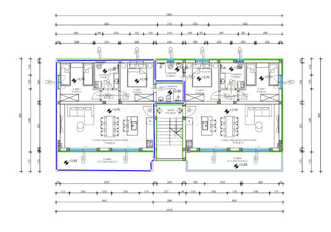 Stan se nalazi na 1.katu novoizgrađene stambene zgrade sa 6 stambenih jedinica. Neto površina stana iznosi 66.67 m2. Stan se sastoji od dnevnog boravka sa kuhinjom i blagovaonicom open space koncepta, 2 spavaće sobe, 2 kupaonice, hodnika i natkrivene terase, idealne za uživanje. Na terasu se dolazi iz dnevnog boravka. Sa terase se pruža pogled na more i na prirodu. U vlasništvu stana je i spremište koje se nalazi u prizemlju zgrade. Stan ima i 2 parkirna mjesta.