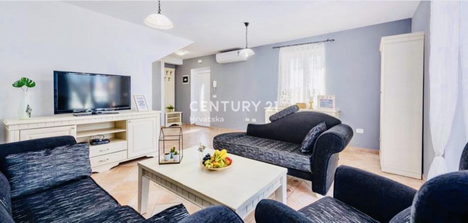 Kuća se prostire na parceli od 208 m2, što pruža dovoljno prostora za uživanje na otvorenom. S jugozapadnom orijentacijom, kuća je izuzetno sunčana, što dodatno doprinosi ugodnom ambijentu. Unutrašnjost kuće se sastoji od prizemlja u kojem su smješteni ulazni hodnik/komunikacija, kuhinja sa blagavaonom, dnevni boravak sa izlazom na natkrivenu terasu, i kupaonice.