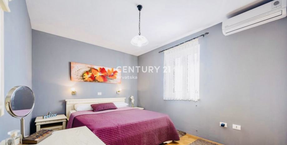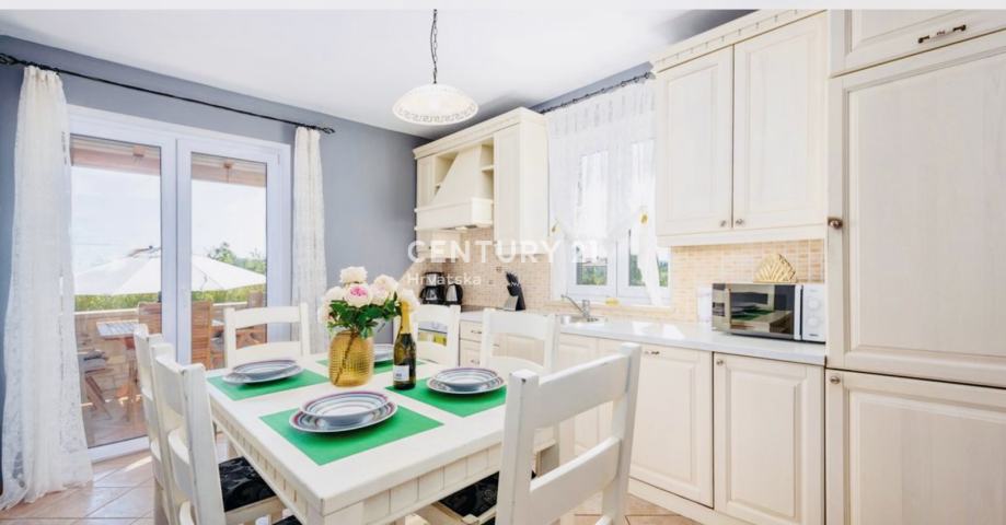Unutarnjim stepeništem penjemo se na prvi kat na kojem su smještene tri prostrane spavaće sobe, idealne za obitelj ili goste. Kuhinja je moderno opremljena s aparatima, uključujući perilicu posuđa i rublja, te TV, krevet i radni stol, što omogućuje udoban i funkcionalan boravak.