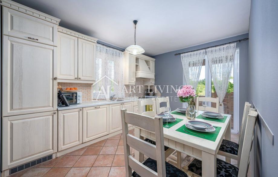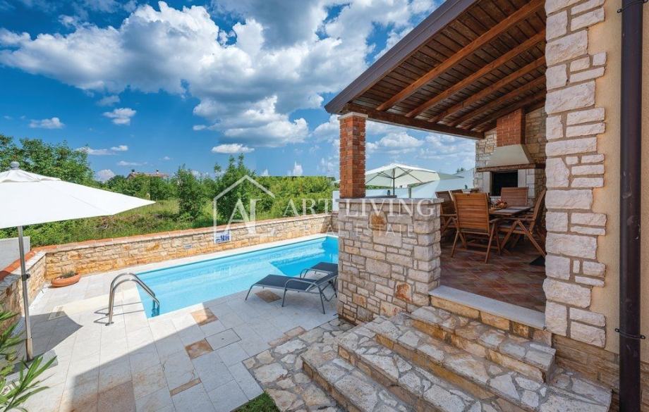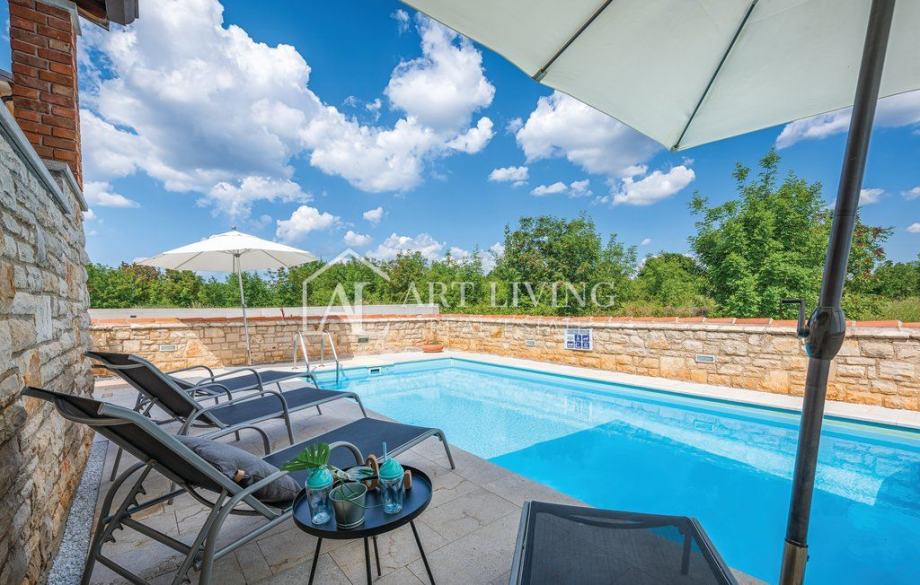 Prodaje se prekrasna dvojna kuća sa bazenom, smještena na mirnoj lokaciji 300 m od mora i plaže te okružena prirodom i zelenilom. Udaljena je 6 km od grada Umaga, 5 km od grada Novigrada i 10 km od graničnog prijelaza sa Slovenijom.