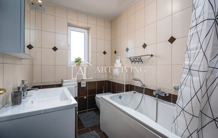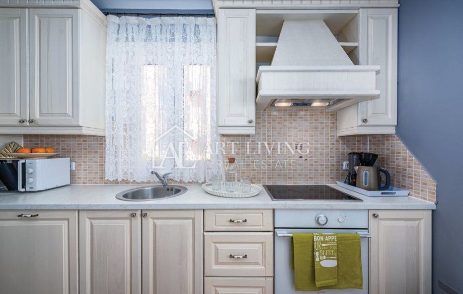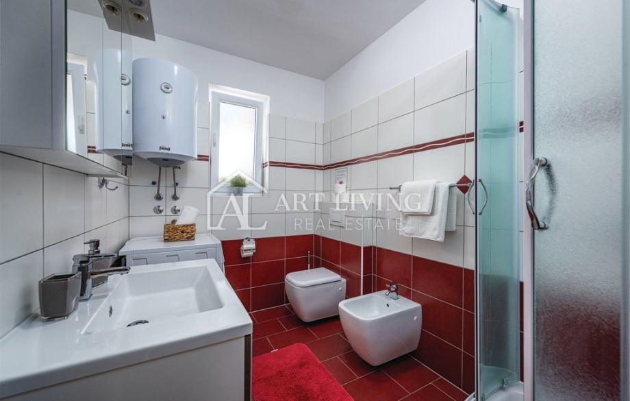 Kuća ima i vlastito natkriveno parkirno mjesto te se prodaje kompletno namještena i uređena.