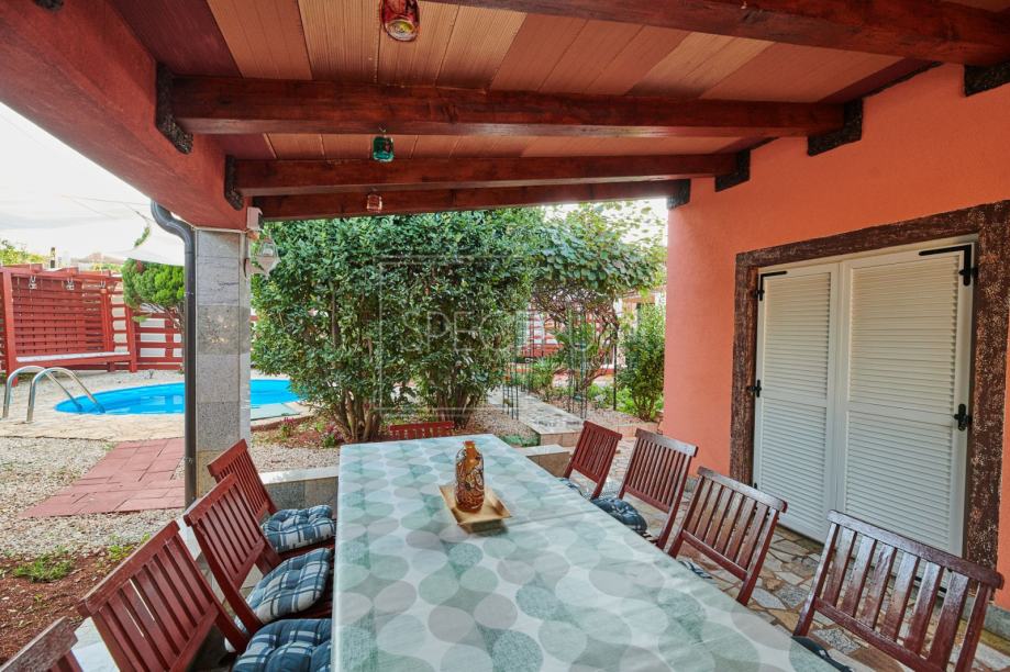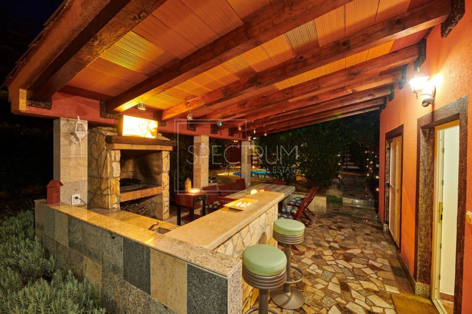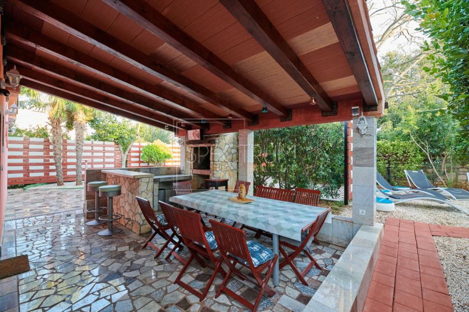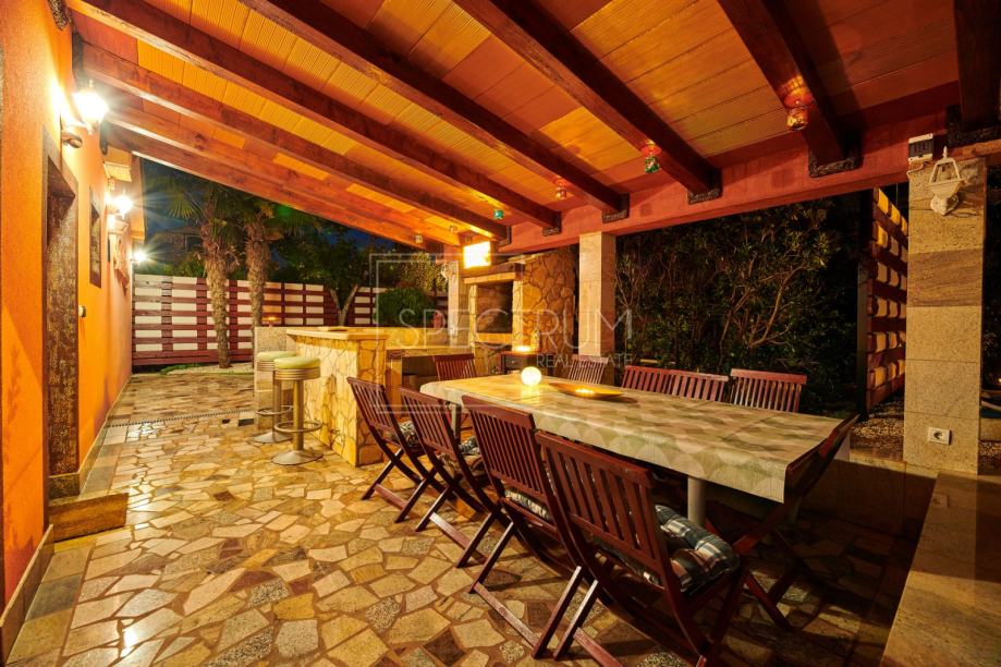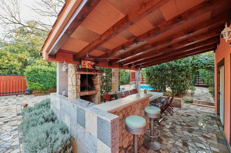Površina ograđene i uređene okućnice iznosi 533 m2. Pored kuće se nalazi vanjska terasa idealna za uživanje na otvorenome, ljetna kuhinja te manji bazen sa sunčalištem. Kuća ima vanjsko spremište, prikladno za ostavljanje alata i raznih drugih stvari. U sklopu okućnice postoji prostor za nekoliko parkirnih mjesta.