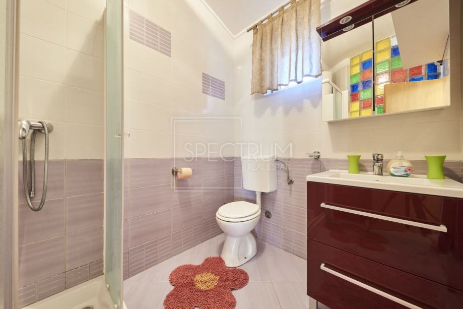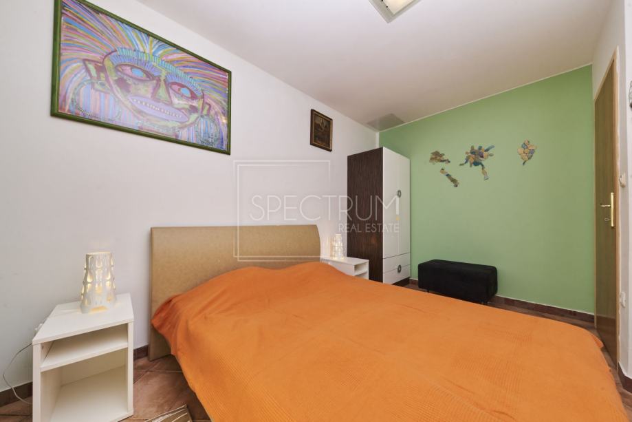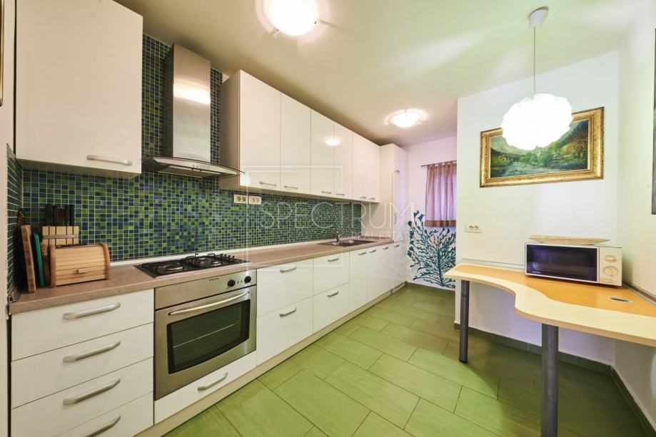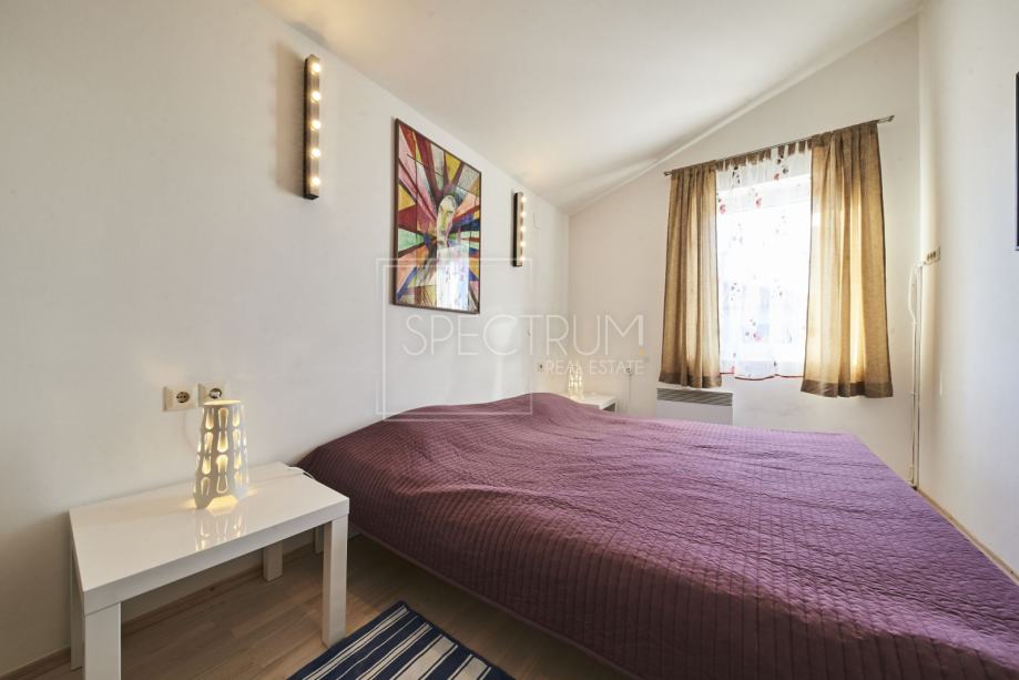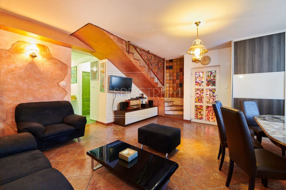 Kuća se proteže kroz prizemlje i kat. Površina kuće iznosi 143 m2. U prizemlju se nalazi dnevni boravak sa blagovaonicom, kuhinja, 2 spavaće sobe, 2 kupaonice i hodnik. Unutarnjim stepenicama se dolazi do kata gdje se nalaze još 2 spavaće sobe i kupaonica. Kuća je namještena te se kao takva i prodaje. Kuća se grije putem peći na drva, norveških radijatora i klima uređaja. Kuća ima i sustav video nadzora i alarm.