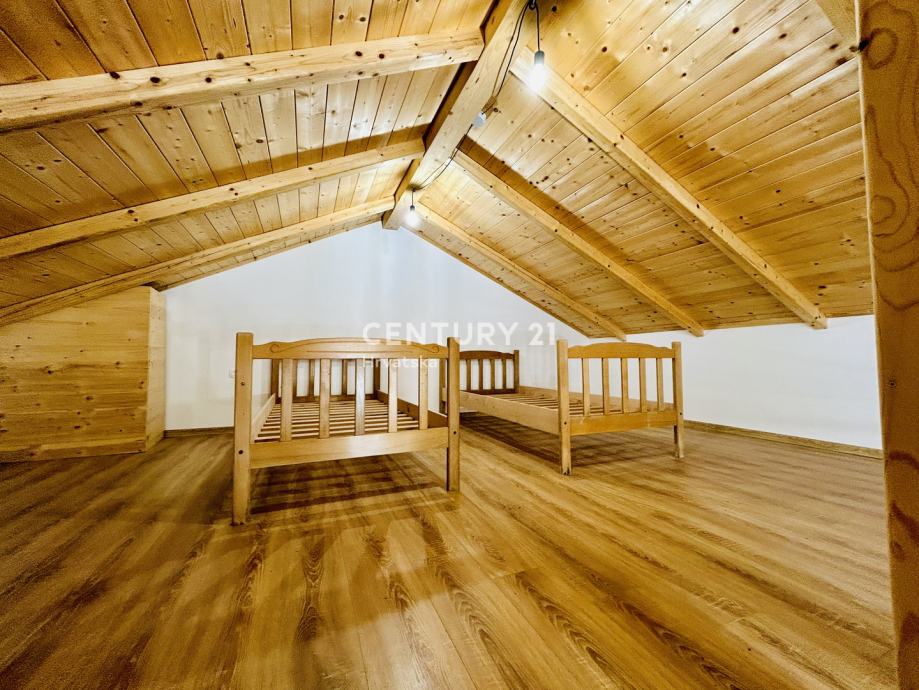 Unutarnjim stepeništem se penjemo na mansrdu koja je normalne visine na kojoj je smještena još jedna spavaća soba.