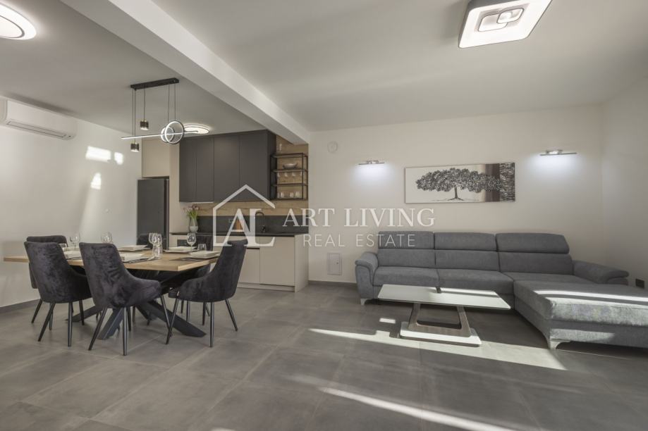 Nekretnina je izgrađena od visokokvalitetnih građevinskih materijala sa podnim grijanjem cijele kuće te klima uređajima.