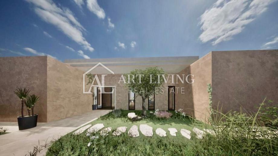 Nekretnina po projektu ukupne površine 141 m2 sastoji se od master spavaće sobe sa vlastitom terasom, master kupatila, dodatne 3 spavaće sobe i dodatne 3 kupaone, 2 zasebna spremišta i prostora za dnevni život u kojeg se smjestio prostrani dnevni boravak s blagovaonom i kuhinjom u jednom većem otvorenom i prozračnom prostoru iz kojega se proteže i direktan izlaz na vanjsku natkrivenu terasu, uređeno sunčalište te veliki bazen dimenzija 10x4 m