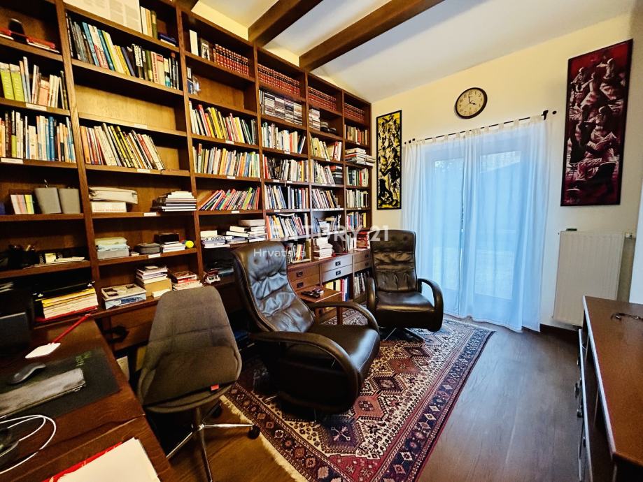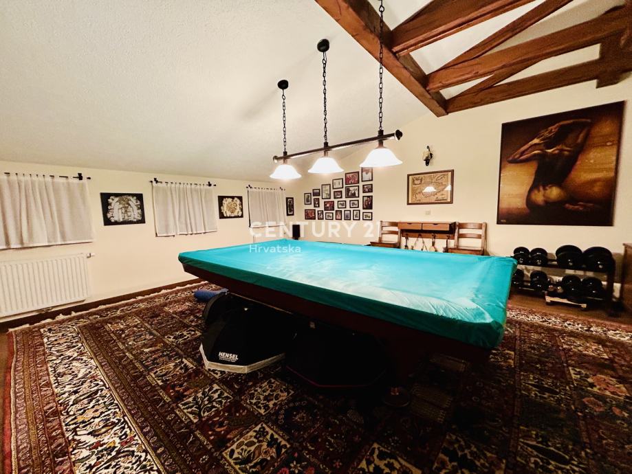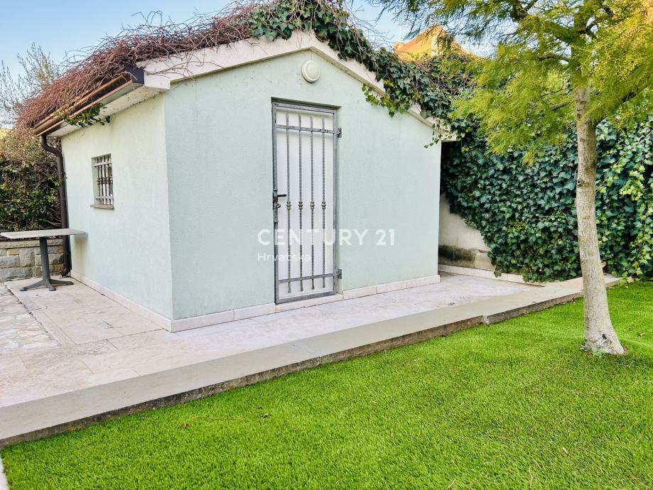 Dodatne pogodnosti uključuju balkon, atrij, vrt i terasu, savršene za opuštanje na svježem zraku. Kuća je opremljena video nadzorom, protuprovalnim vratima i alarmom, osiguravajući potpunu sigurnost. Za opuštanje i uživanje tu su bazen i ljetna kuhinja, dok uređena okućnica i vrtna kućica dodaju šarmu ovog imanja. Ljubitelji roštiljanja zasigurno će uživati u vanjskom roštilju.